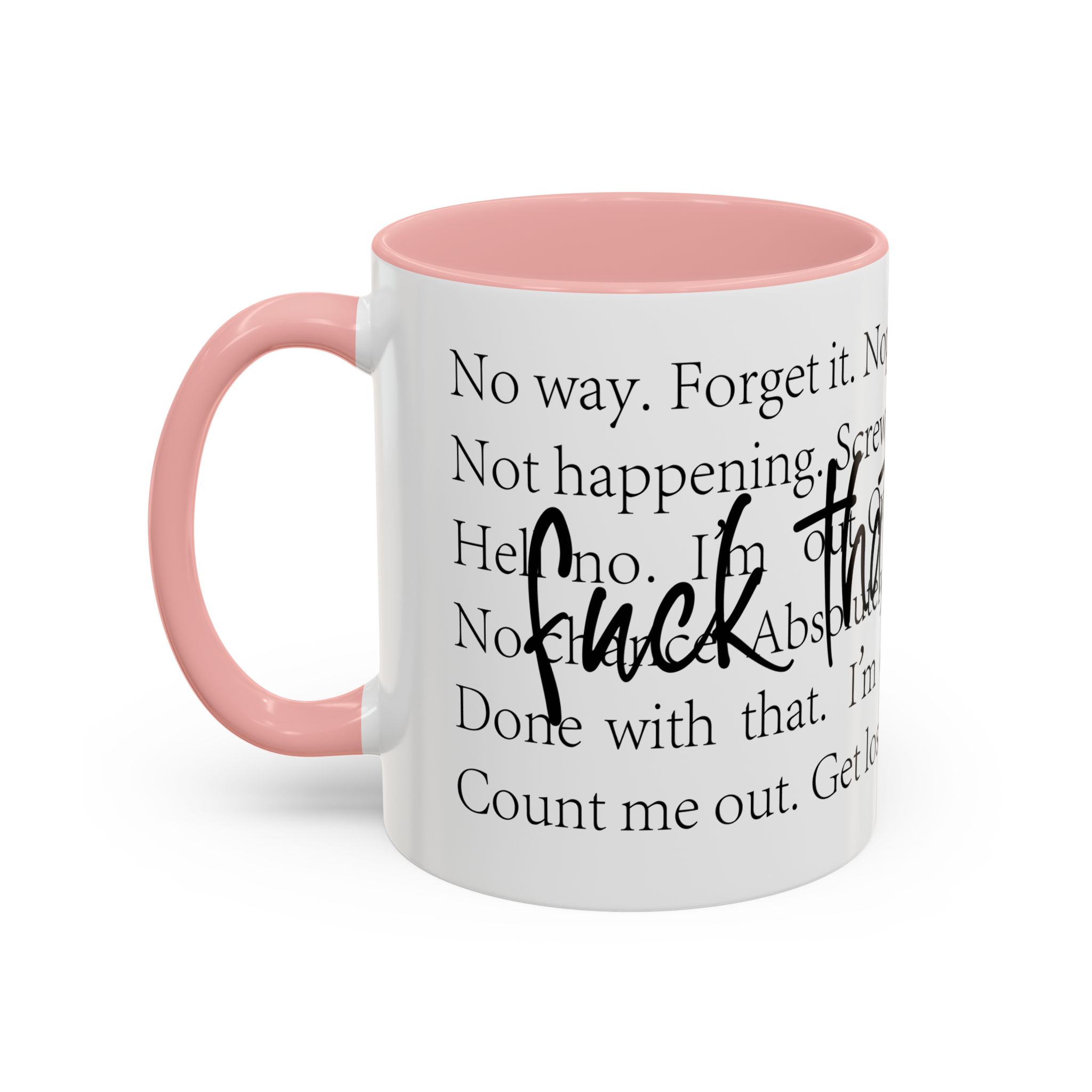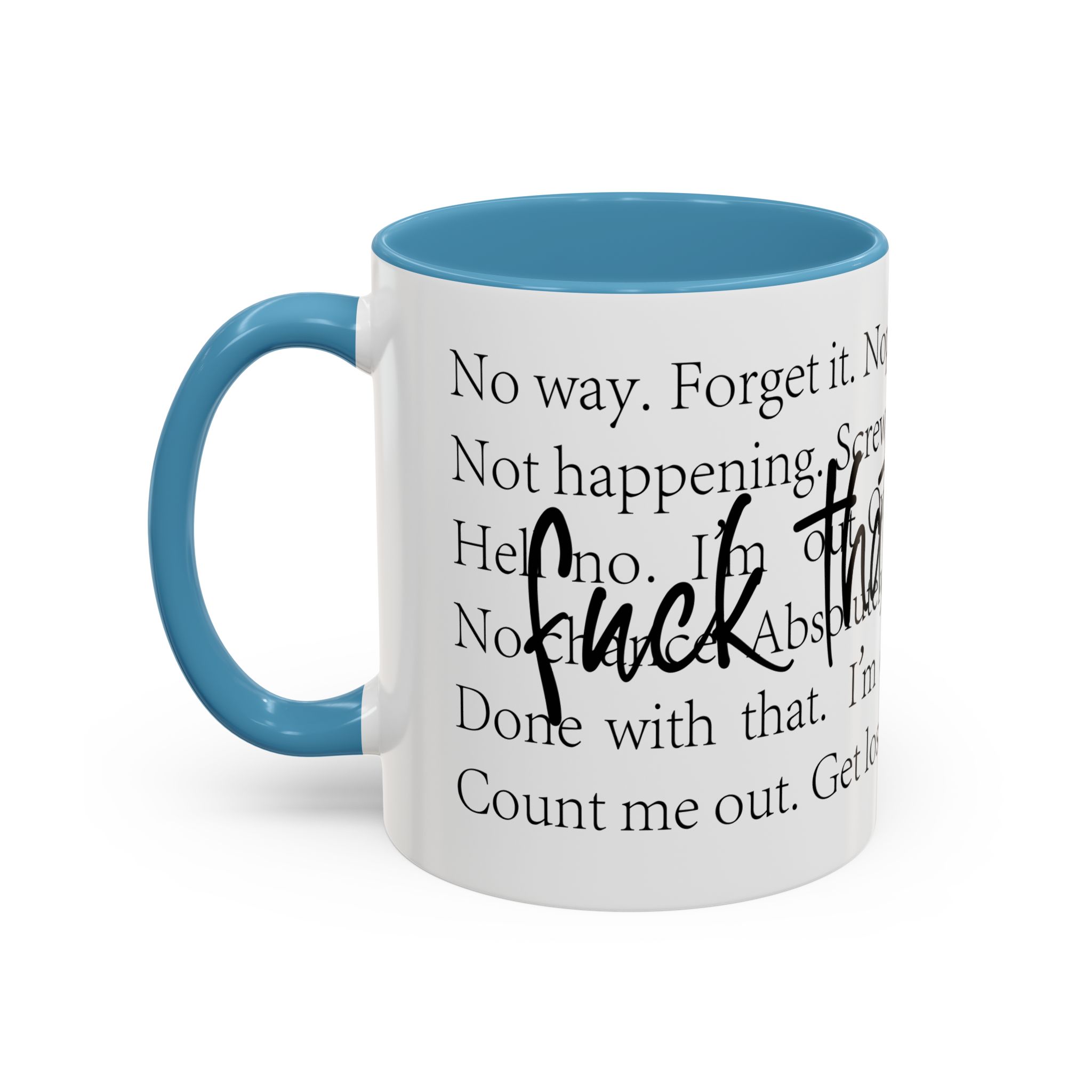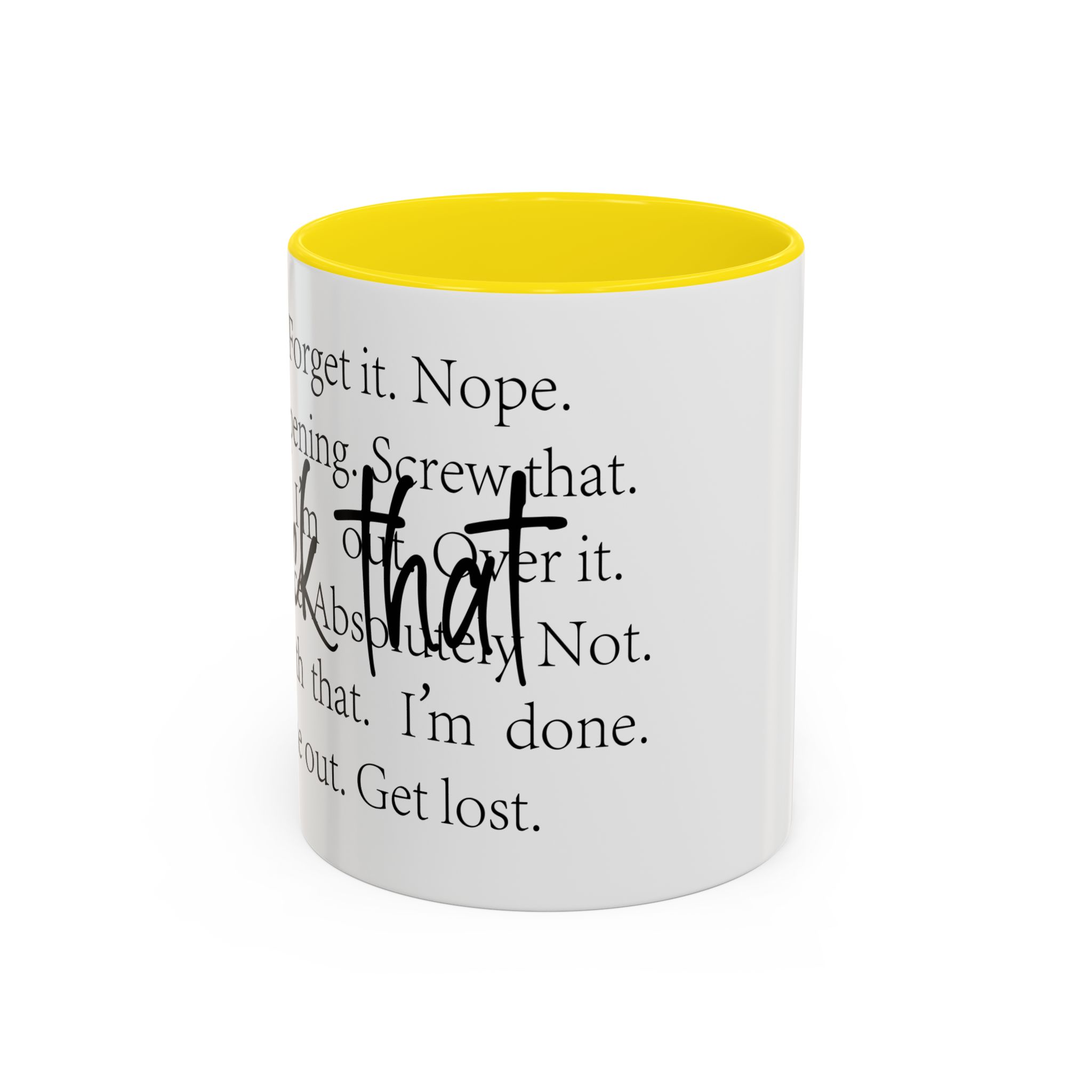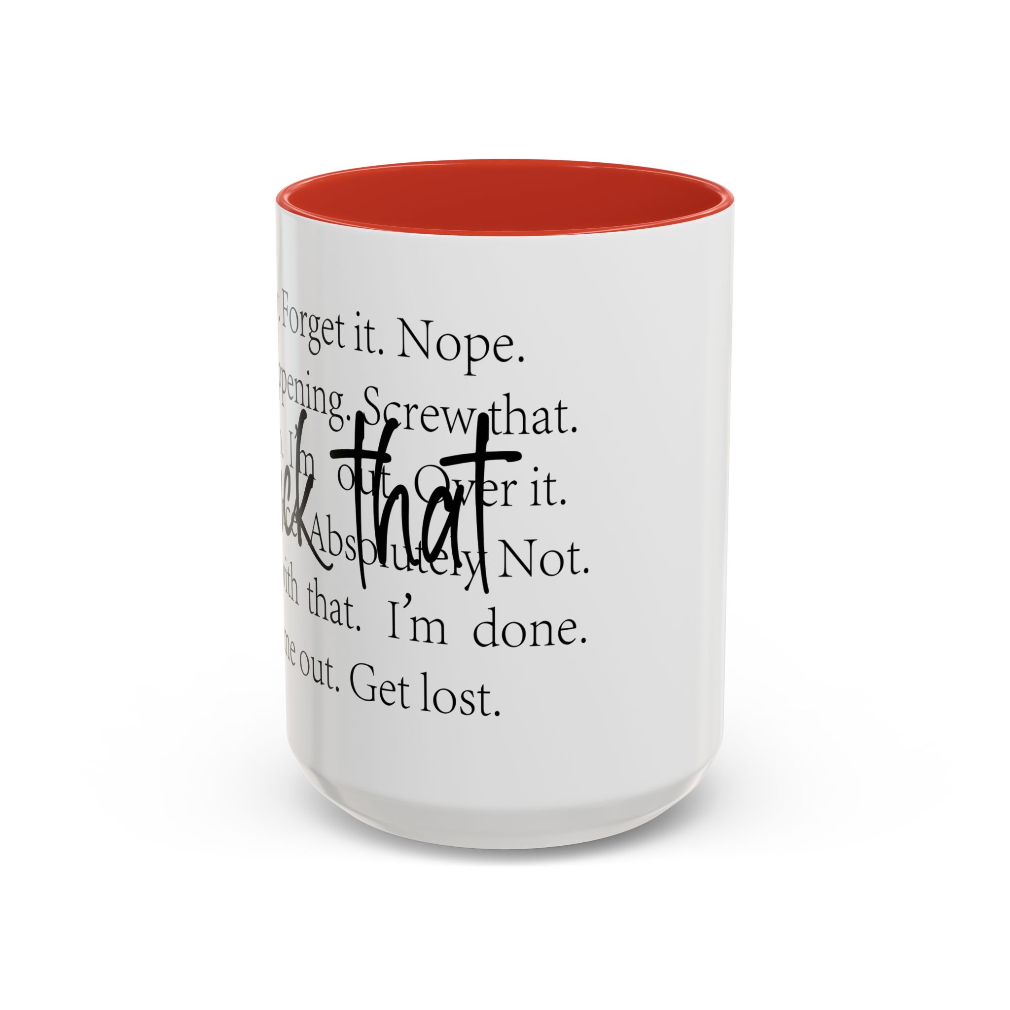 Enjoy your favorite beverages with this stylish Accent Coffee Mug. Made from durable white ceramic, this mug features a vibrant interior and handle available in multiple colors. Its glossy finish and eye-catching color contrast will make your morning coffee or tea a delightful experience. This mug is not just a kitchen essential; it adds a touch of personality to your home or office. Perfect for coffee lovers, this product is ideal for gifting on occasions like birthdays, holidays, or even just to brighten someone’s day. The ergonomic C-shaped handle ensures a comfortable grip, making every sip enjoyable. Ideal for anyone who appreciates a good laugh and needs a daily dose of motivation during their caffeine fix!