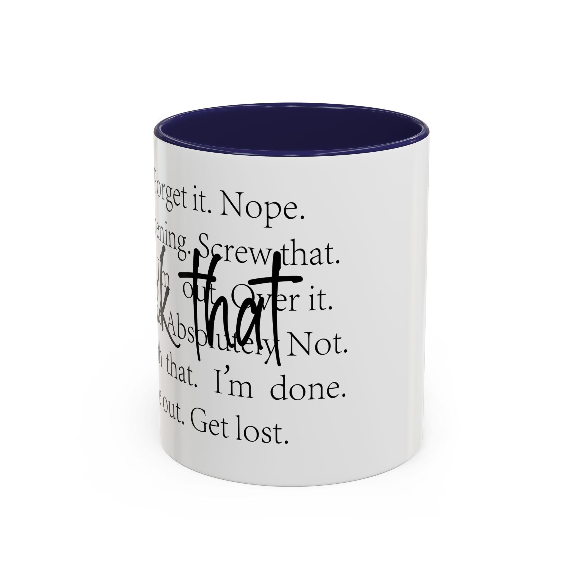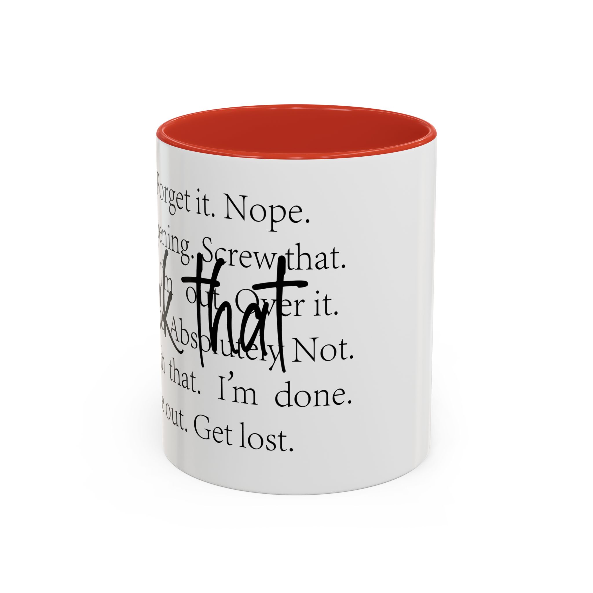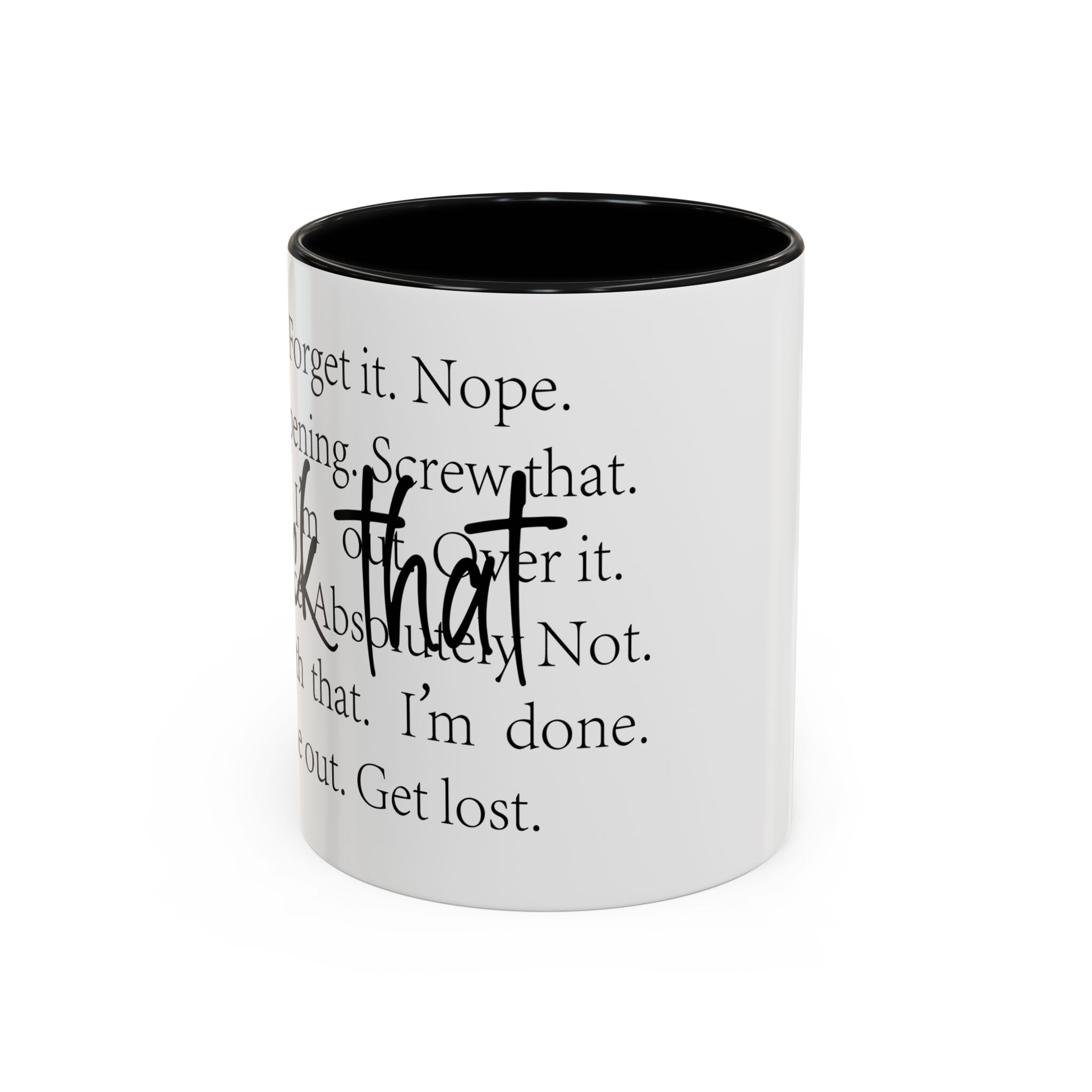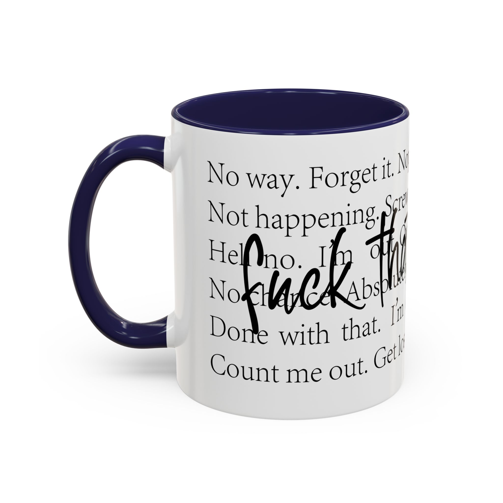 Enjoy your favorite beverages with this stylish Accent Coffee Mug. Made from durable white ceramic, this mug features a vibrant interior and handle available in multiple colors. Its glossy finish and eye-catching color contrast will make your morning coffee or tea a delightful experience. This mug is not just a kitchen essential; it adds a touch of personality to your home or office. Perfect for coffee lovers, this product is ideal for gifting on occasions like birthdays, holidays, or even just to brighten someone’s day. The ergonomic C-shaped handle ensures a comfortable grip, making every sip enjoyable. Ideal for anyone who appreciates a good laugh and needs a daily dose of motivation during their caffeine fix!